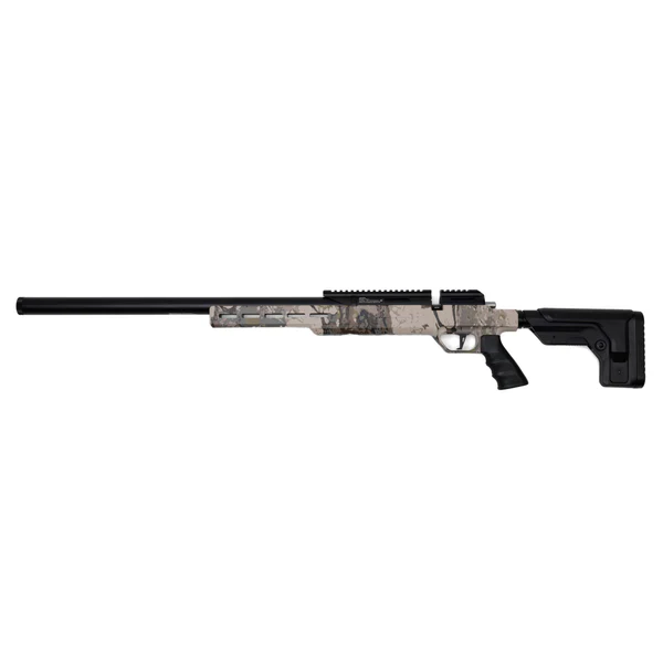 The 250z combines modern aesthetics with a Veil Camo Cumbre finish, perfect for shooters who prefer a low-profile look without sacrificing style. The non-reflective finish ensures that the rifle blends seamlessly into outdoor environments, while its tactical design enhances both form and function. The 6-position butt stock offers both length of pull and cheek piece height adjustment. The M-Lok compatible foregrip allows for the attachment of a variety of accessories. From the AR-style modular grips to the integrated air storage around the barrel, every aspect of The 250z is engineered for performance with a tactical edge.
