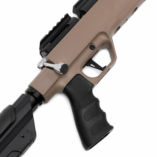 Built for durability and performance, The 250z features a robust breech and air tube, paired with a high-quality polymer stock. Integrated air storage around the barrel ensures compact efficiency, while the M-Lok compatible stock and modular AR-style grips allow for extensive customization. Every element, from the polymer stock to the steel components, is chosen to deliver reliable, all-weather performance for the modern shooter.